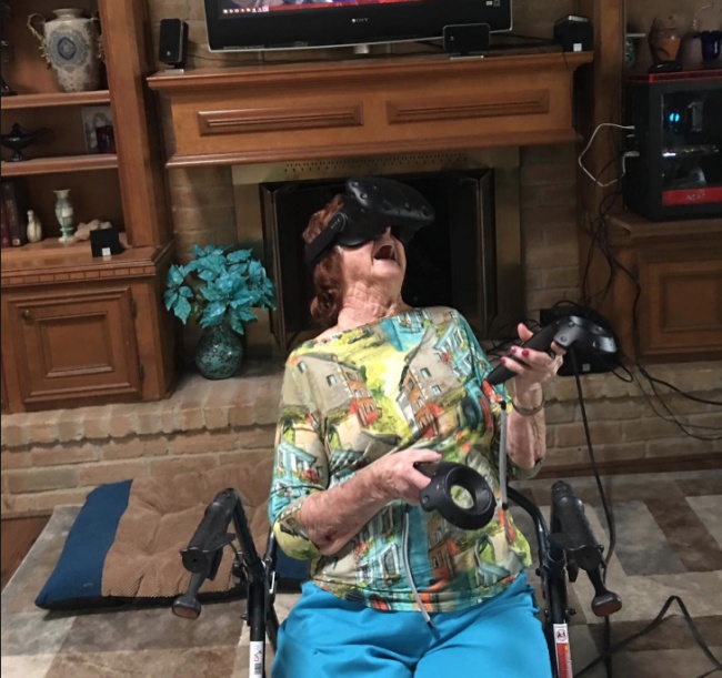 O batrana de 96 de ani poarta, pentru prima data, ochelari pentru realitate virtuala