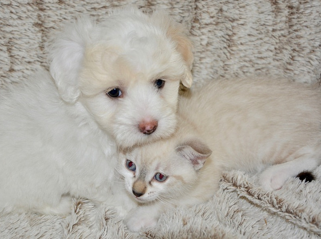 De multe ori vedem caini care reactioneaza urat atunci cand o pisica le apare in cale. Se pare, insa, ca nu este si cazul celor din imaginile de mai jos.
