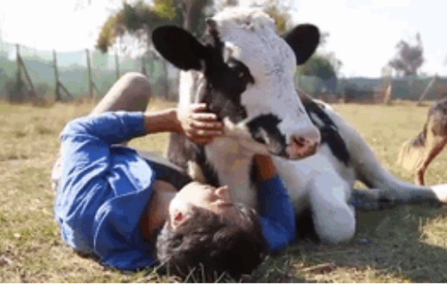 Cand auzi de un animal de companie, te gandesti, instinctiv, la un caine, la o pisica sau cel mult la un hamster. Exista insa si alte fiinte cel putin la fel de iubitoare si dornice de atentie. Vacile, de exemplu, sunt unele dintre cele afectuoase animale dar, din cauza dimensiunilor lor impresionante, ce necesita spatiu adecvat, nu pot fi cumparate de oricine. Iata, deci, cateva imagini care demonstreaza cele spuse mai sus: