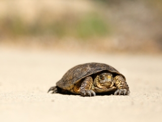 O broasca testoasa "patina" prin nisipul desertului in cautare de apa