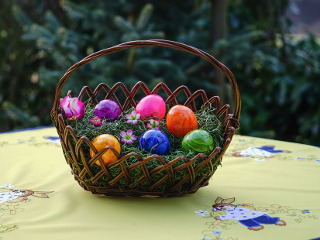Sambata seara se pregateste cu grija cosul cu bucate care urmeaza sa fie dus la biserica pentru sfintire. In acesta se pun oua rosii, pasca, cozonac si preparate din carne, acoperite cu cel mai frumos stergar din casa.