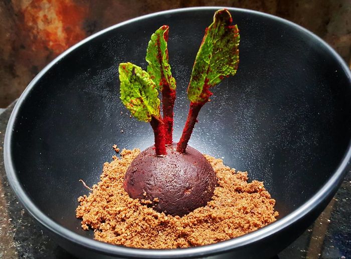 De la realizarea unei simple bomboane sub forma unui mar sau a unei felii de paine prajita pana la scrumierele comestibile si portocale stricate, un bucatar reuseste sa isi surprinda mereu cu deserturi delicioase pentru intreaga familie. Iata cateva imagini: