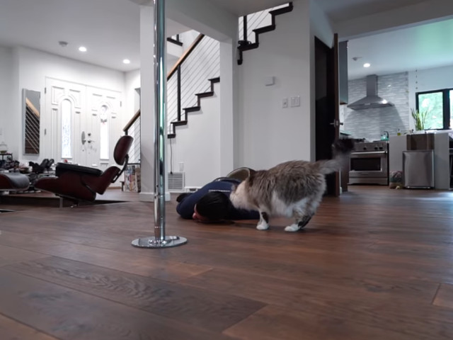 Acest barbat s-a prefacut timp de zece minute ca este lesinat pentru a observa cat de mult ii pasa pisicii de ceea ce i se intampla. Din pacate, rezultatul nu a fost cel scontat, caci pisica s-a jucat nepasatoare cu un bat in tot acest timp, dupa care a iesit din camera.