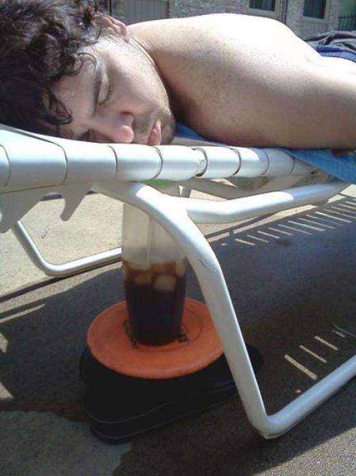 De ce sa te mai ridici sa iei paharul in mana, cand poti sta linistit sa te bronzezi?