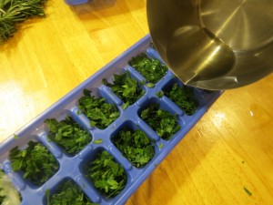 Un truc pe care bucatarii in folosesc pentru a economisi timp si pentru a da savoare mancarii. Pune in tava pentru cuburi de gheata ulei de masline amestecat cu diverse ierburi (salvie, cimbru, busuioc, marar, rozmarin) si bag-o in congelator. De fiecare data cand ai nevoie, poti folosi un cub pentru a da gust mancarii pe care o prepari.