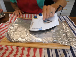 Daca iti place in mod deosebit sunca, dar nu ai o tigaie sau un cuptor pentru a gati, exista o solutie simpla si de incredere: fierul de calcat. Tot ce trebuie sa faci este sa pui sunca intr-o folie de aluminiu si sa o impachetezi bine. Mai intai asigura-te ca folosesti un prosop gros dedesubt, pentru a nu deteriora suprafetele, iar apoi incalzeste cu fierul de calcat. Un alt exemplu il poti vedea in video-ul de mai jos: