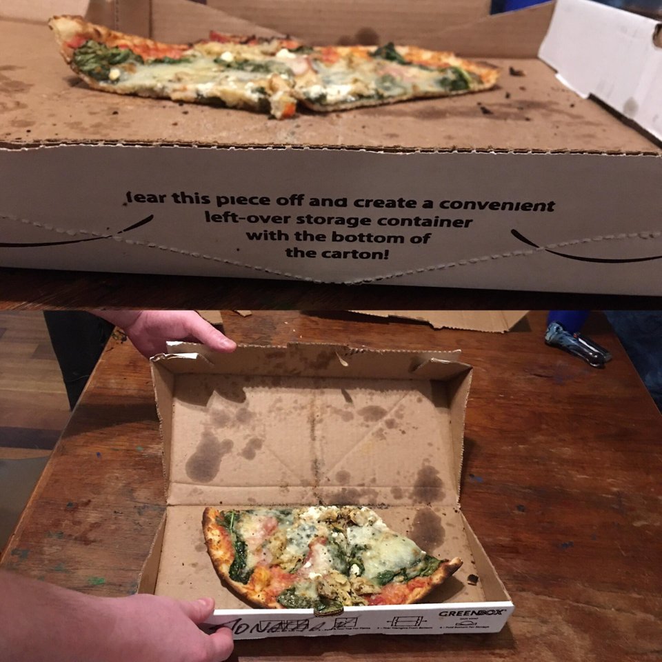 O cutie de pizza care se poate "transforma" intr-una pentru resturi