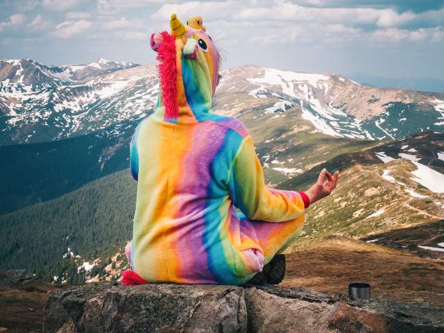 Cand ajungi in varful muntelui si gasesti pe cineva costumat in unicorn, meditand