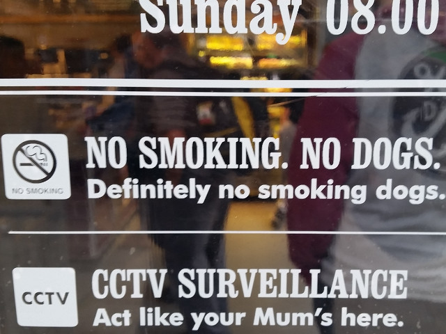 "Fara fumat. Fara caini. Cu siguranta, nu se fumeaza caini"