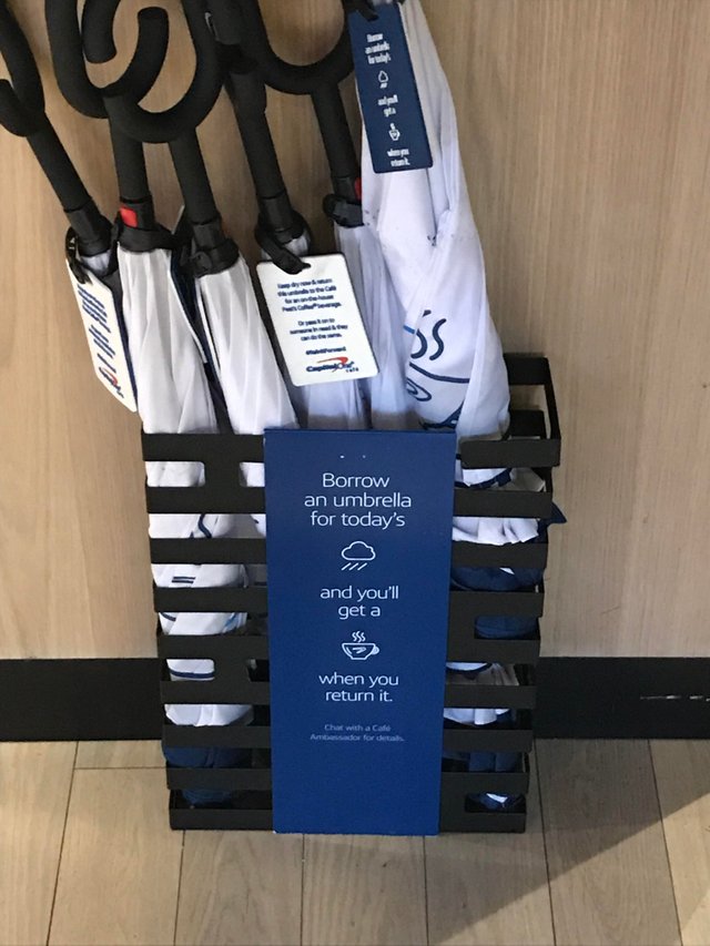 Cafenea de unde poti imprumuta o umbrela, iar apoi primesti o cafea pentru ca o returnezi