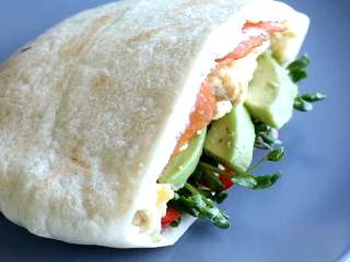 Acesta este un preparat delicios, in care aroma somonului se potriveste perfect cu cea a cremei de branza delicate si cu gustul dulce al morcovului si al stafidelor. Indiferent ca alegi sa il servesti la micul dejun sau la pranz, ingredientele sale, lipie, mix salata, somon salbatic, ou gaina, morcov, stafide, seminte de dovleac, seminte de floarea soarelui, cream cheese, iti vor oferi o sursa importanta de proteine si fibre pentru intrega zi.