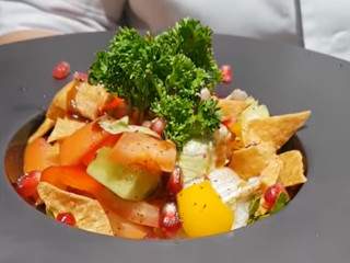 Salata Fattoush este o salata libaneza foarte sanatoasa si satioasa, ideala pentru pranz. Combinatia de legume proaspete, rosii, castraveti, salata verde, ridichi, ceapa, ardei gras, patrunjel si valeriana, amestecata cu sosul de lamaie si ulei de masline si cu gustul puternic al mentei, alaturi de painea prajita, ofera o experienta culinara proaspata si rafinata.