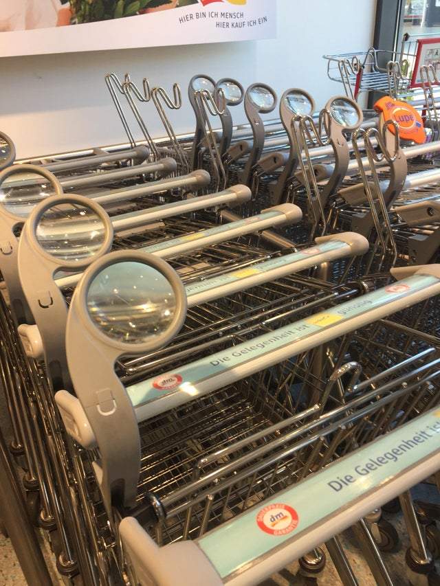 Cosuri de cumparaturi cu lupa, pentru a putea citi etichetele cu scrisul foarte mic