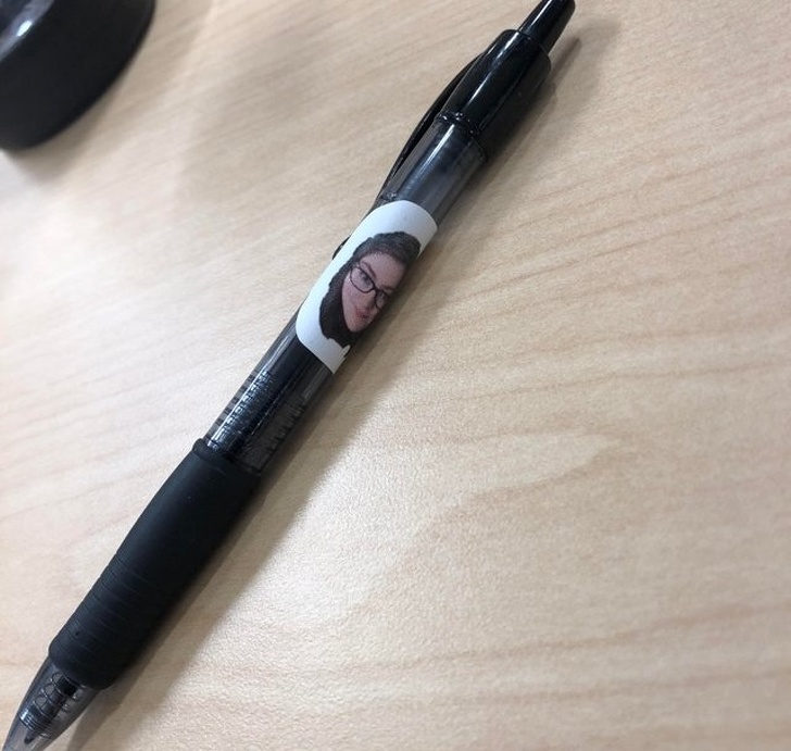 O femeie exasperata ca ii sunt luate pixurile a decis sa le personalizeze