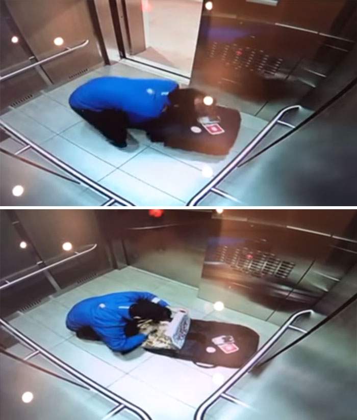 Un curier care nu stie sa tina o pizza