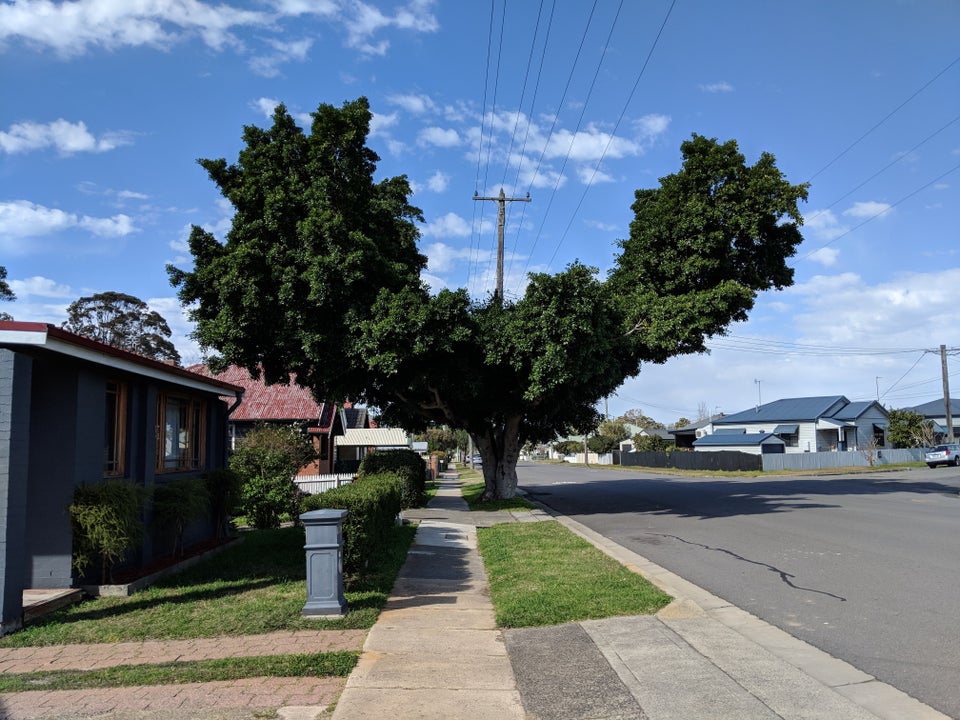 Un om a taiat din crengile copacului, astfel incat aleea sa poata fi folosita
