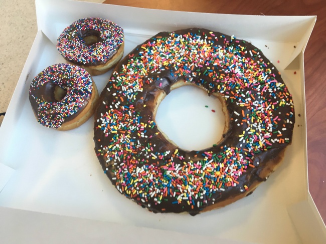 Cand a primit cutia cu gogosi, a ramas surprinsa sa gaseasca aceasta gogoasa gigant