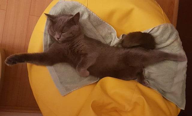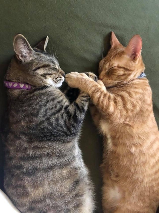 Aceste doua pisicute dorm in aceasta pozitie in fiecare seara