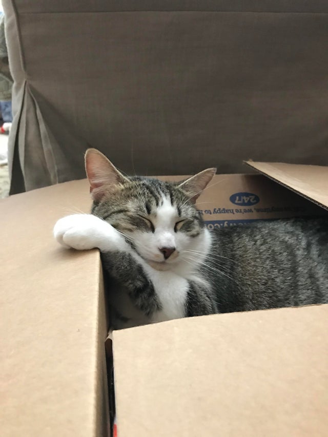 Nu conteaza ca are un pat confortabil, ea prefera cutia