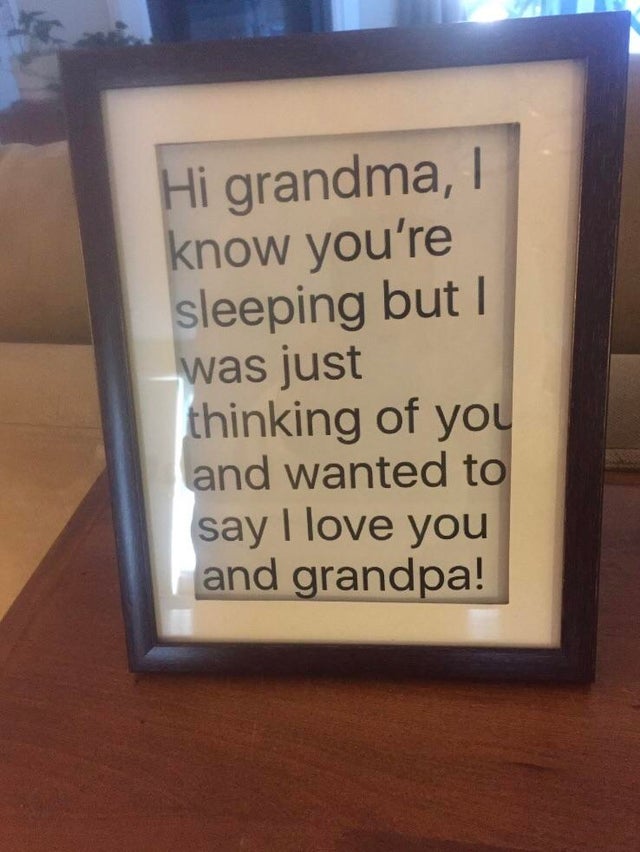 Mesajul unui nepot catre bunici, care a meritat sa fie inramat: "Buna bunico, stiu ca dormi, dar am vrut doar sa stii ca ma gandesc la tine si ca te iubesc si pe tine si pe bunicul"