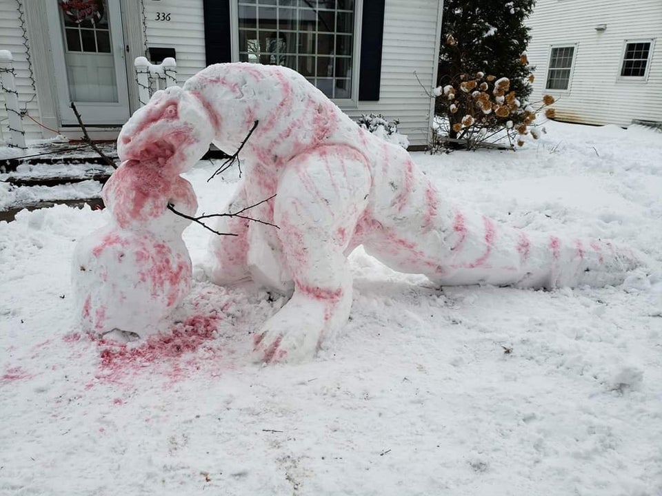 Vecinul sau s-a gandit sa faca un dinozaur din zapada