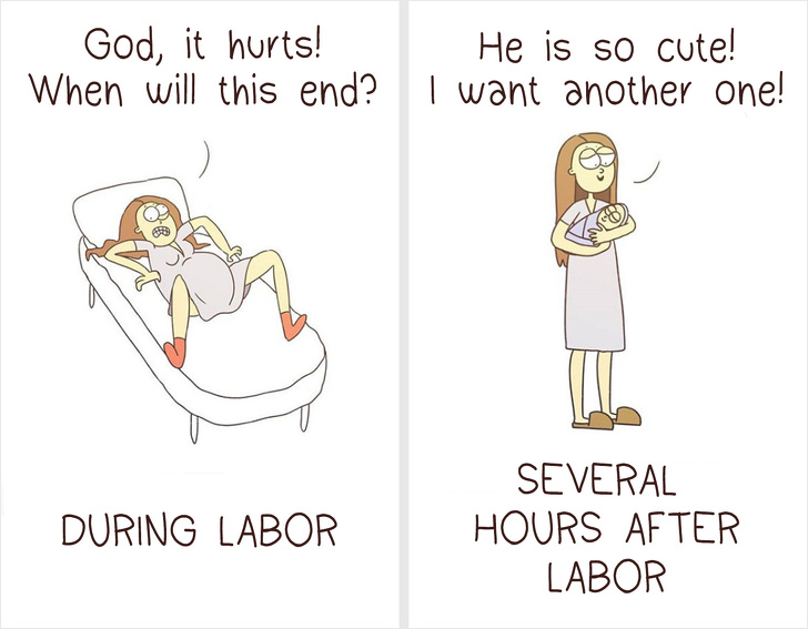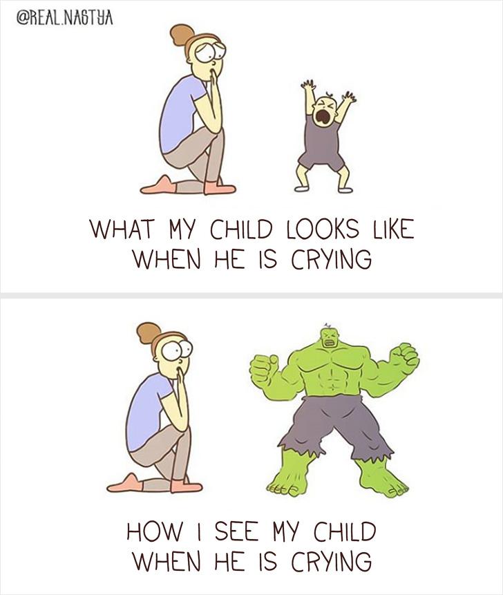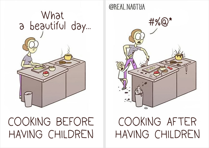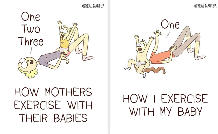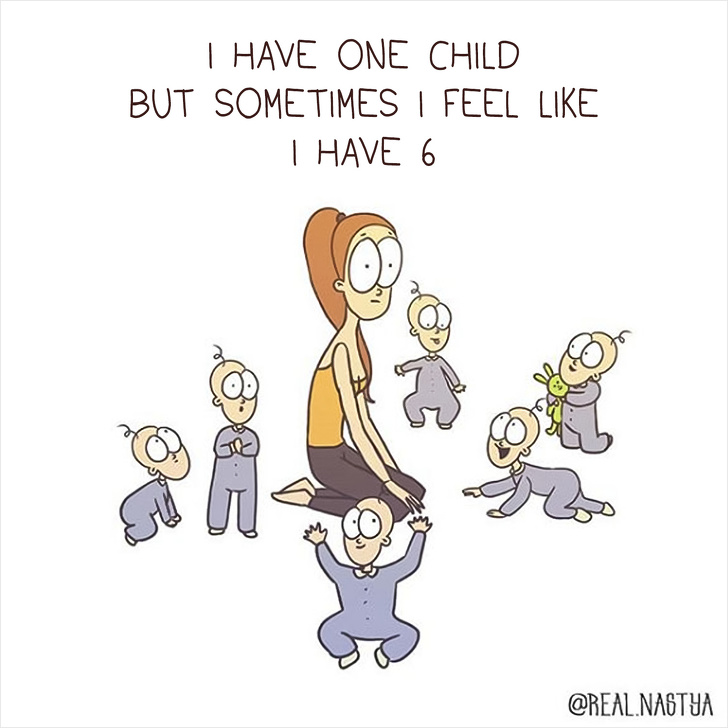 Este minunat atunci cand poti trece peste dificultati, folosindu-te de simtul umorului, dar este si mai bine atunci cand ai talent la desen, potrivit Bright Side. Artista Anastasiya Lykova este norocoasa: are un baietel si stie exact cat de interesanta si dificila poate fi viata de parinte. Folosindu-se de experienta si de imaginatia bogata, Anastasiya creaza ilustratii, cu care se poate identifica orice mama. Iata cateva dintre lucrarile artistei.