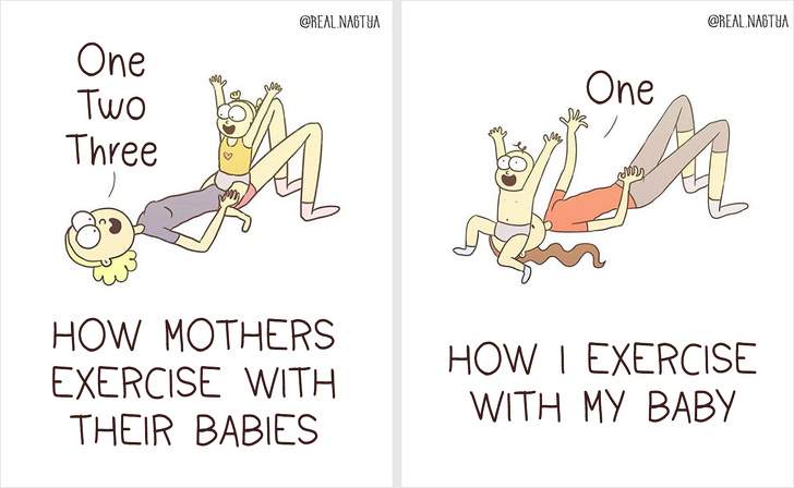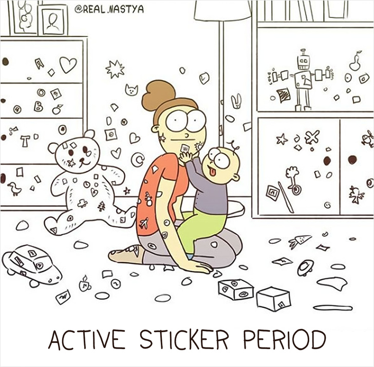 Este minunat atunci cand poti trece peste dificultati, folosindu-te de simtul umorului, dar este si mai bine atunci cand ai talent la desen, potrivit Bright Side. Artista Anastasiya Lykova este norocoasa: are un baietel si stie exact cat de interesanta si dificila poate fi viata de parinte. Folosindu-se de experienta si de imaginatia bogata, Anastasiya creaza ilustratii, cu care se poate identifica orice mama. Iata cateva dintre lucrarile artistei.