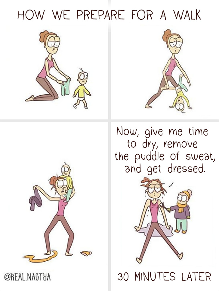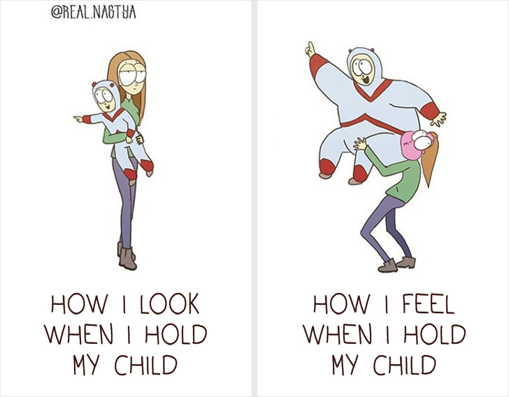 Este minunat atunci cand poti trece peste dificultati, folosindu-te de simtul umorului, dar este si mai bine atunci cand ai talent la desen, potrivit Bright Side. Artista Anastasiya Lykova este norocoasa: are un baietel si stie exact cat de interesanta si dificila poate fi viata de parinte. Folosindu-se de experienta si de imaginatia bogata, Anastasiya creaza ilustratii, cu care se poate identifica orice mama. Iata cateva dintre lucrarile artistei.