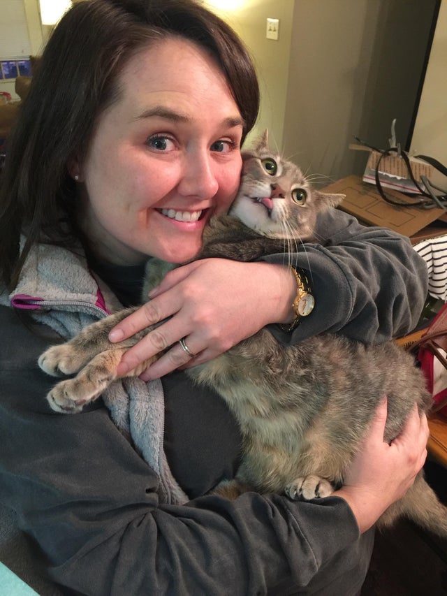 Fata pisicii atunci cand este prinsa ca a facut ceva rau