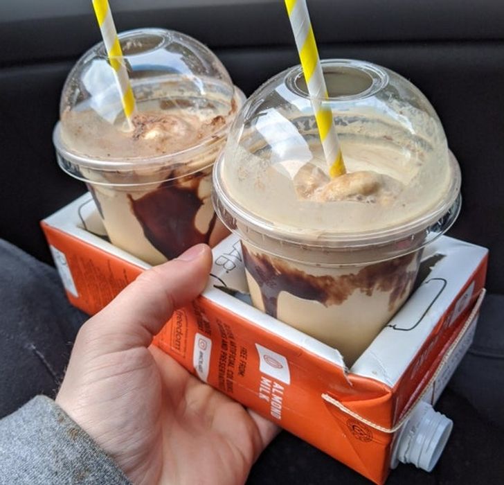 „Tava pentru băuturi pe care am primit-o de la o cafenea este o cutie de lapte refolosită”