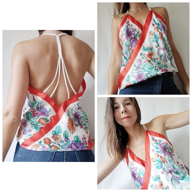 „Și-a făcut bluză din eșarfe vechi”