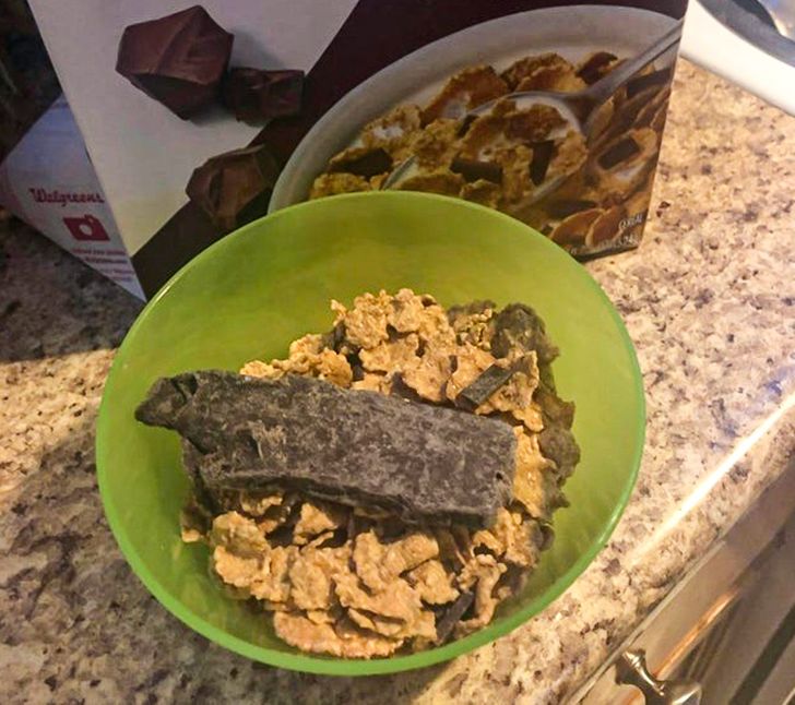 „Am găsit această bucata masivă de ciocolată în cutia cu cereale”