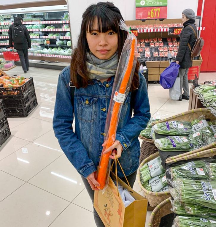 Morcovi lungi de vânzare la un supermarket din Japonia