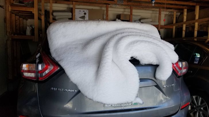 „Zăpada de pe mașina șoțului meu seamănă cu o pătură pusă la întămplare!”
