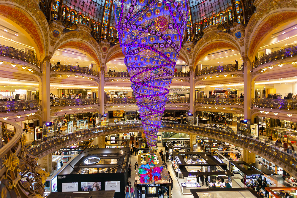 Acest brad de Crăciun lung de douăzeci și cinci de metri, decorează un centru comercial francez, Galeries Lafayette.