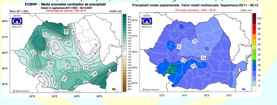 Valorile termice vor fi mai ridicate decât cele specifice pentru acest interval în regiunile extracarpatice, iar în rest vor fi apropiate de cele normale pentru această perioadă, posibil ușor mai coborâte la munte. Cu excepția regiunilor nord-estice, regimul pluviometric va fi excedentar, mai ales în nord-vestul teritoriului și în sud-estul extrem, potrivit ANM.