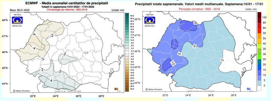 Cu excepția regiunilor vestice, valorile termice se vor situa peste cele specifice acestei perioade, cu o abatere termică pozitivă mai accentuată în sudul țării. Cantitățile de precipitații se vor situa în general în jurul celor normale pentru acest interval, dar cu posibilitatea unui excedent local în sud-vestul extrem al țării și a unui ușor deficit în nord-vest, potrivit ANM.