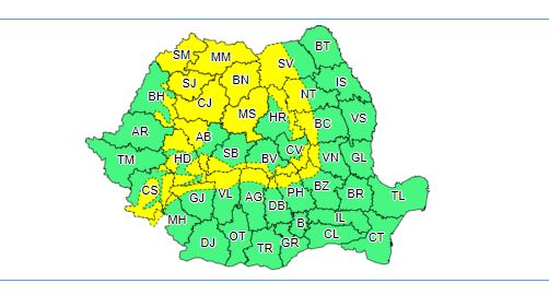 În intervalul menționat, în județele Satu Mare, Sălaj, Maramureș, Cluj, Bistrița-Năsăud și Mureș, vântul va prezenta intensificări, cu viteze de 55...65 km/h, temporar viscolind ninsoarea, conform ANM.