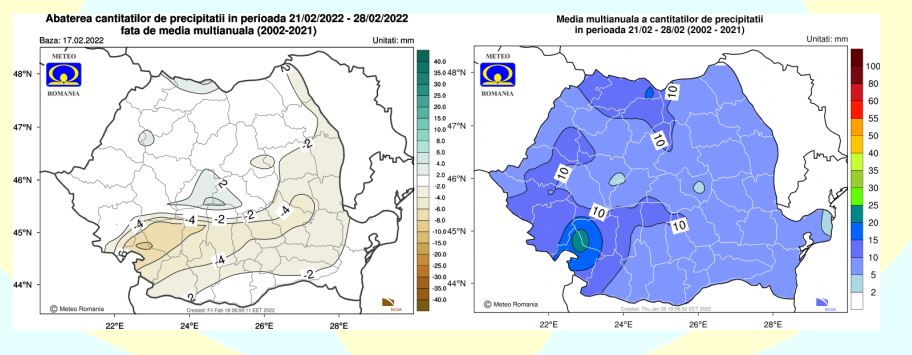 Valorile termice vor fi mai ridicate decât cele specifice pentru această săptămână în regiunile extracarpatice, iar în rest vor fi apropiate de cele normale pentru acest interval. Regimul pluviometric va fi local deficitar în regiunile sudice, iar în rest va fi apropiat de cel normal pentru acest interval, potrivit ANM.