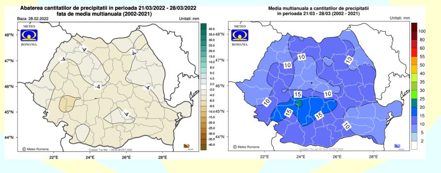 Administrația Națională de Meteorologie (ANM) a emis prognoza pentru ziua de miercuri, 2 martie 2022, cât și estimările pentru întreaga perioadă a lui Mărțișor. Temperaturile vor fi mai scăzute decât cele normale pentru această perioadă, iar primăvara își va intra în drepturi la jumătatea intervalului.