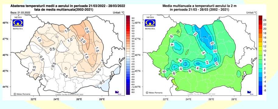 Valorile termice vor fi ușor mai ridicate în nord-estul teritoriului, iar în rest se vor situa în jurul celor specifice pentru această săptămână.Regimul pluviometric va fi deficitar în toată țara, dar mai ales în zonele montane, potrivit ANM.