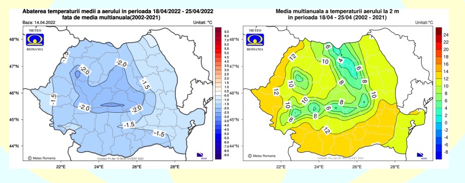 Administrația Națională de Meteorologie (ANM) a emis prognoza pentru weekendul 16 - 17 aprilie 2022. Meteorologii anunță că vremea se va răci considerabil de Florii, raportându-se diferențe de până la 18 grade Celsius între zilele de sâmbătă și duminică. Directorul ANM, Elena Mateescu, a transmis cum va fi atomosfera în perioada următoare.