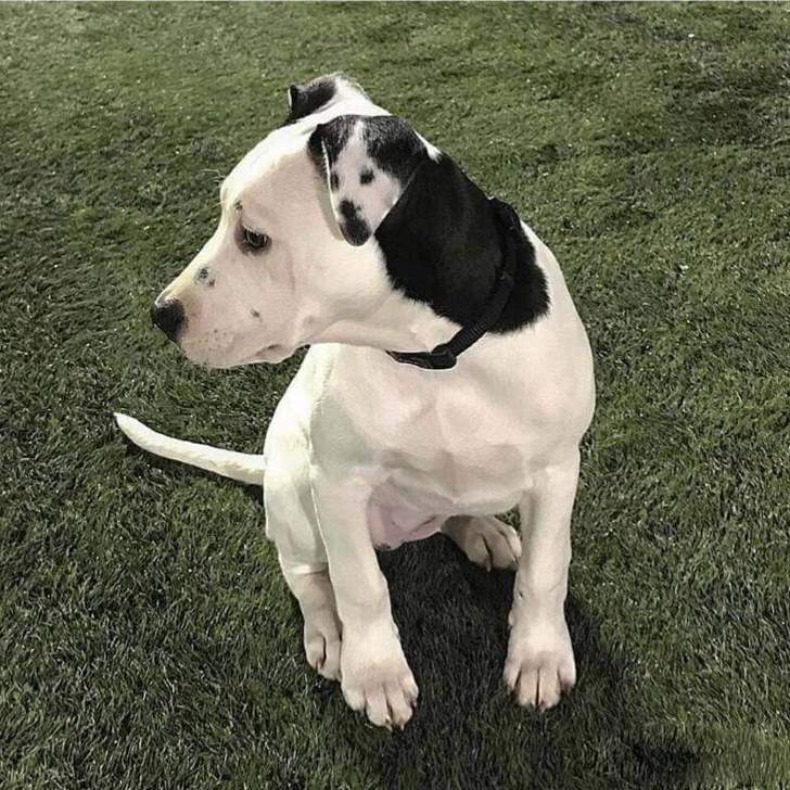 Un caine care are fata "pictata" pe ureche