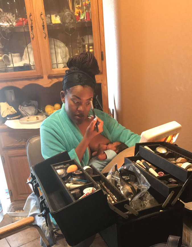 Daca vrei sa arati bine, chiar si dupa ce ai dat nastere unui copil, trebuie sa iti perfectionezi talentul de a face mai multe lucruri in acelasi timp. E destul de complicat sa te machiezi si cand nu faci altceva in acel timp, dar femeile ne demonstreaza mereu ca totul este posibil, chiar si alaptatul in timpul machiajului.